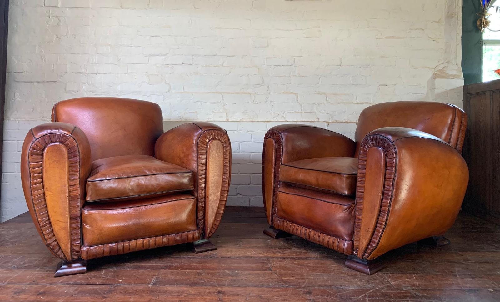 Pair of 1940s French Leather Club Chairs, La Crème de la Crème (1 of 18)