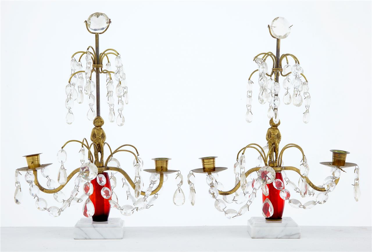 Pair of 1950's Cut Glass Candelabra with Marble Base