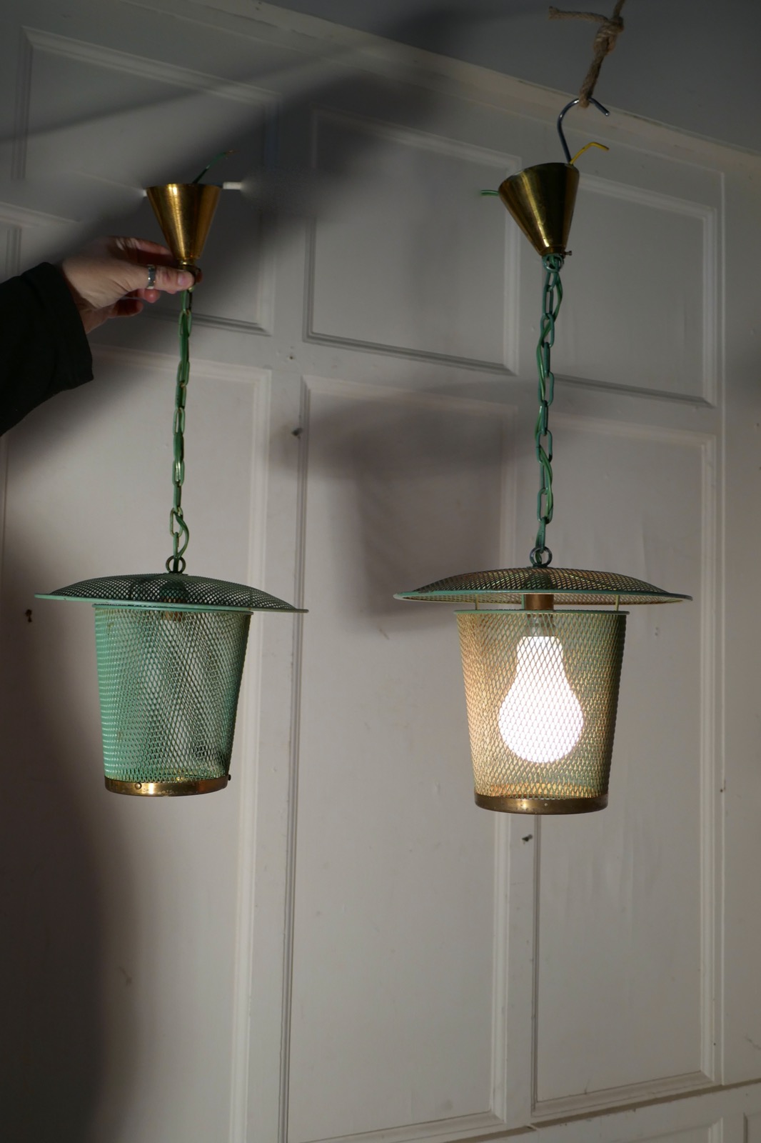 Pair of 1950s Green Mesh Vintage Mid Century Modern Sputnik Ceiling Light, Lanterns