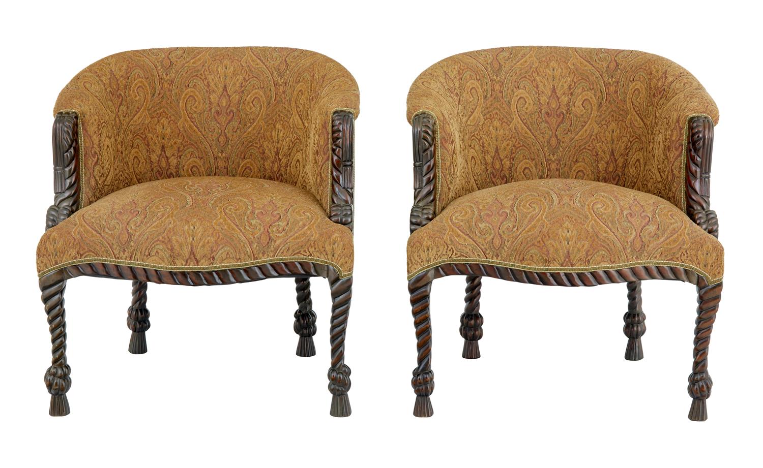 Pair of 1960s Carved Mahogany Tub Armchairs