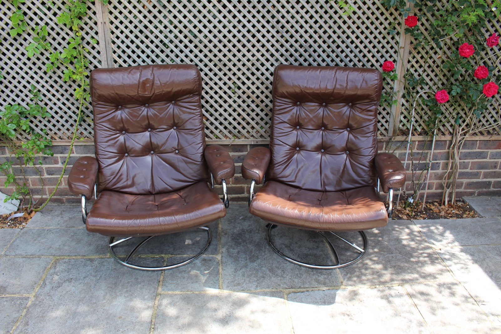 Pair of 1970s Ekornes Reclining Leather Armchairs
