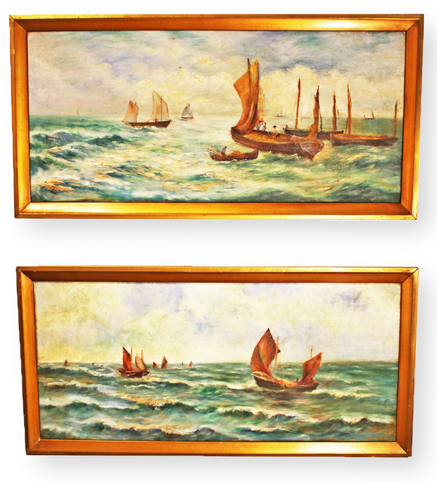 Pair of 19th C Marine Paintings. Oil On Canvas, Cornish Fishing Boats. (1 of 1)