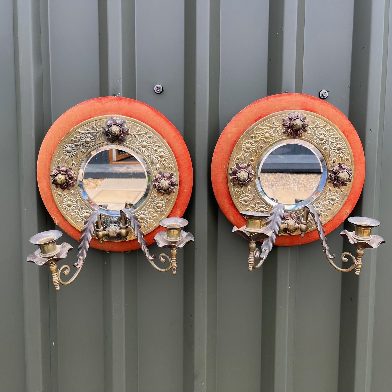 Pair of 19th Century Aesthetic Period Brass & Copper Wall Mirrors