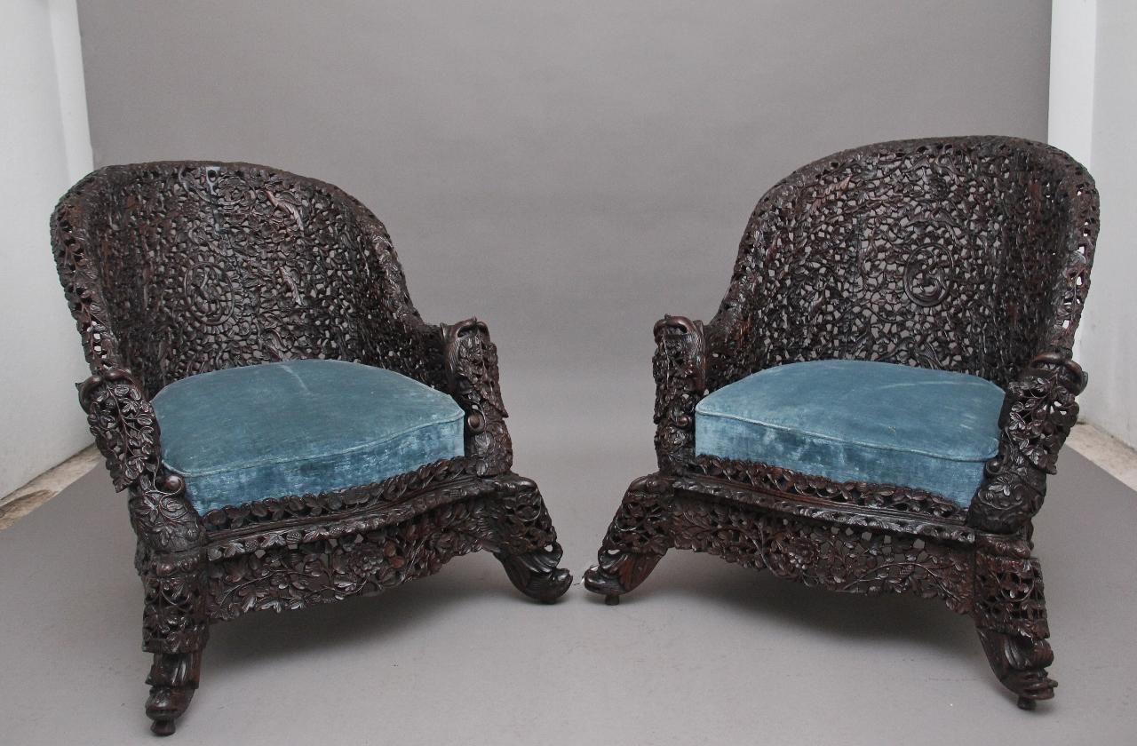 Pair of 19th Century Anglo-Indian Carved Chairs