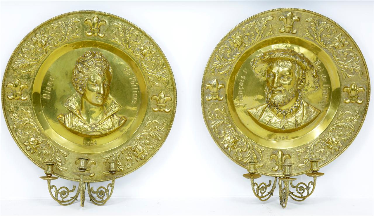 Pair of 19th Century Antique Brass Memorial Plaque Sconces