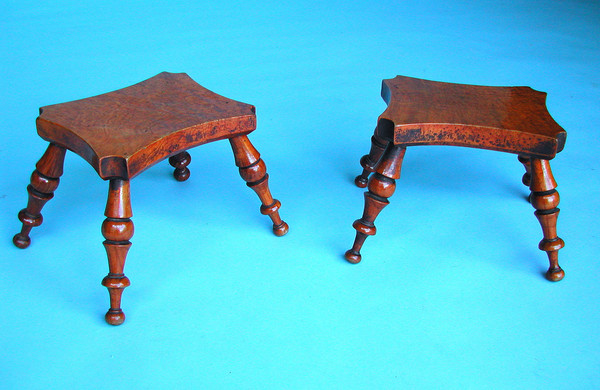 Pair of 19th Century Antique Burr Ash Candlestands / Stools c.1840 to c.1860 English