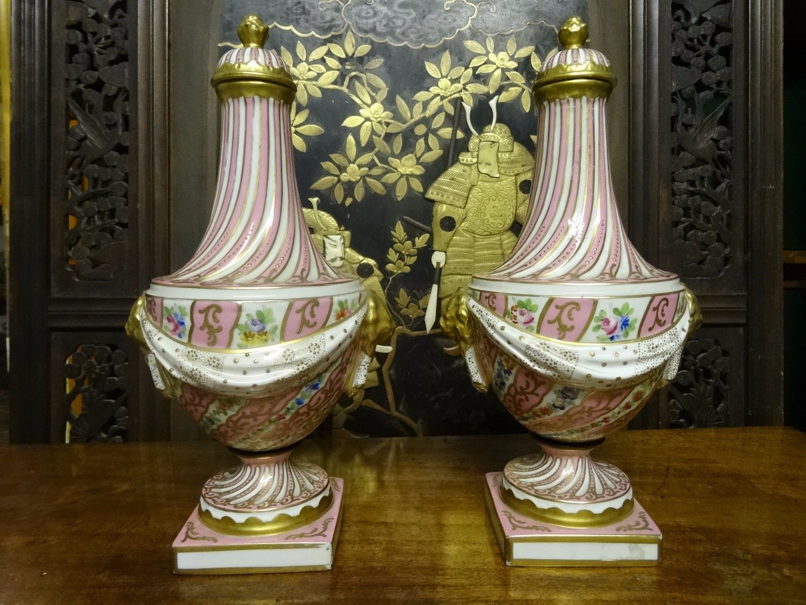 Pair of 19th Century Antique Porcelain China Jugs / Vases Inc. Gilt Masks & Swags