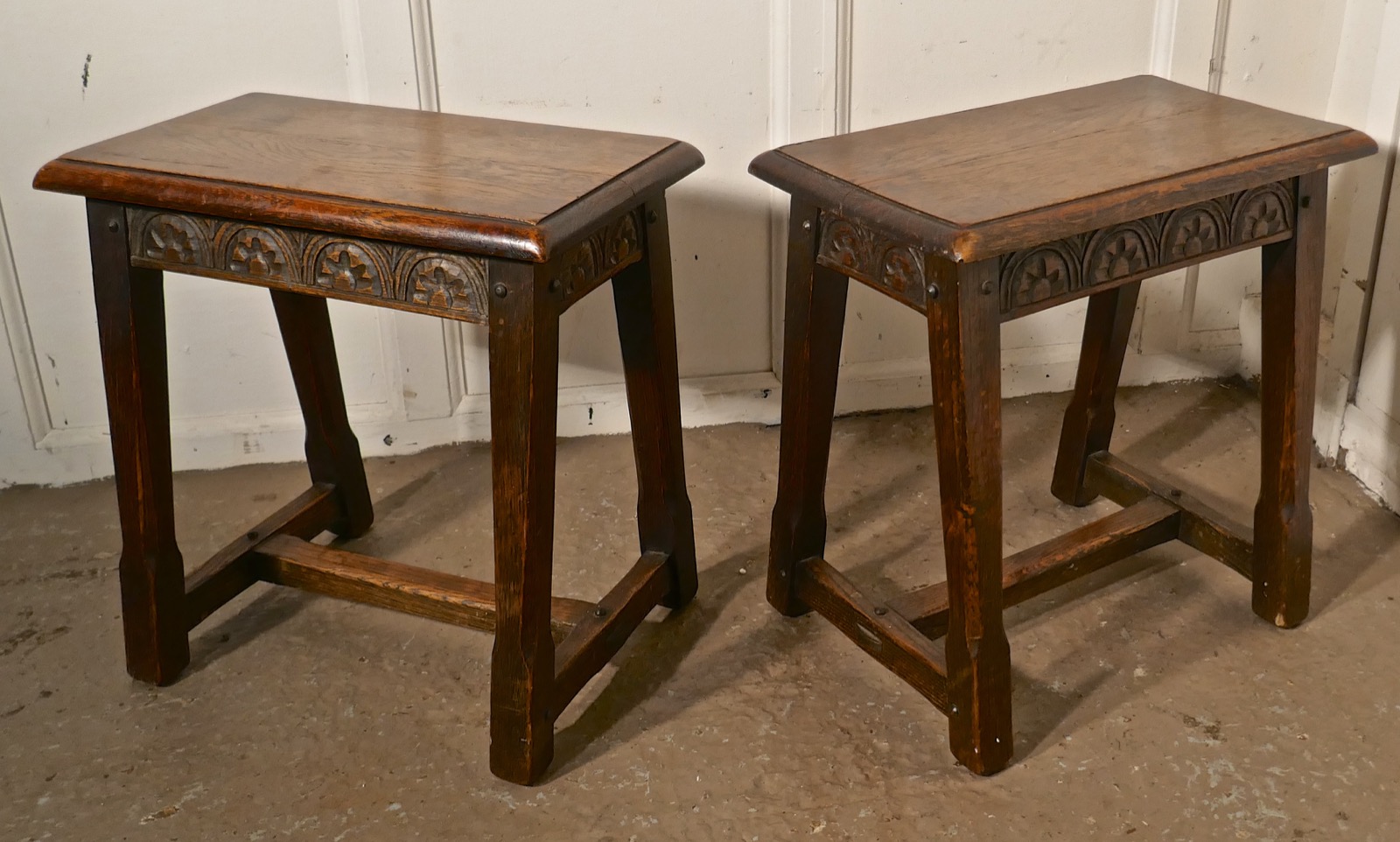 Pair of 19th Century Arts & Crafts Gothic Oak Joint Stools