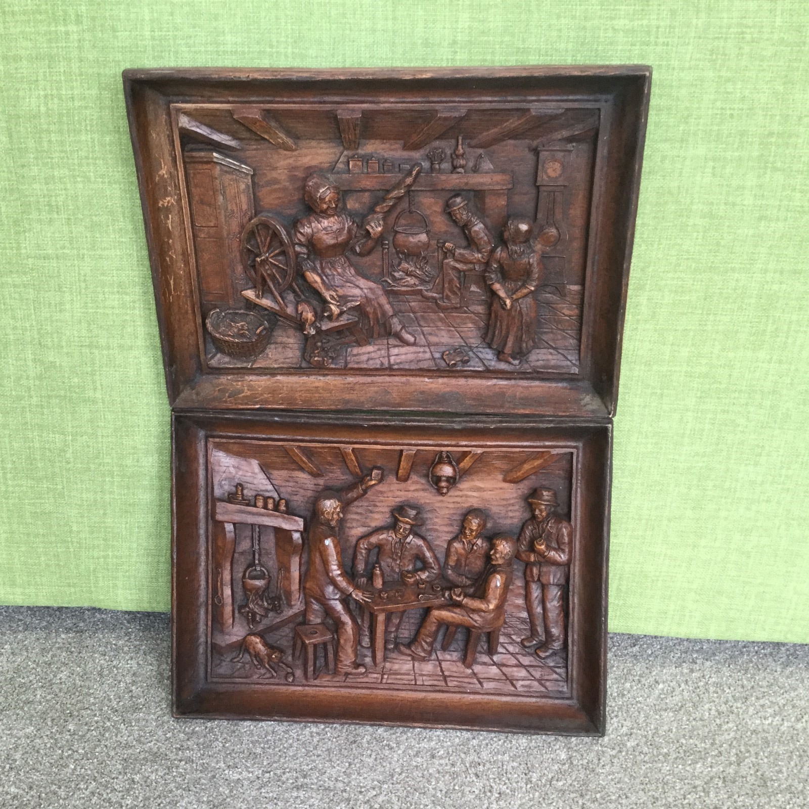 Pair of 19th Century Black Forest Carved Wooden Wall Plaques (1 of 1)