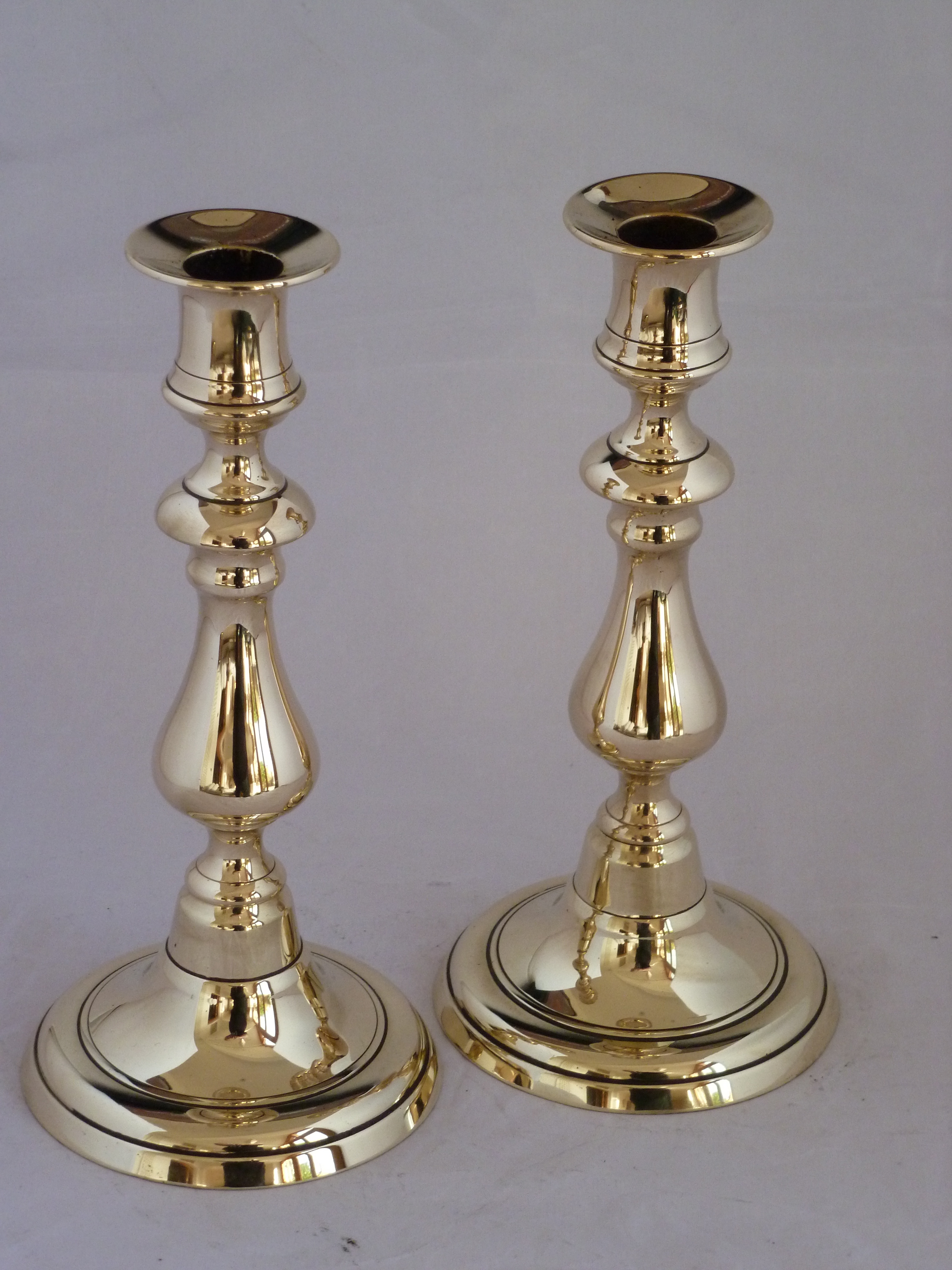 Pair of 19th Century Brass Round Base Candlesticks c.1860-80