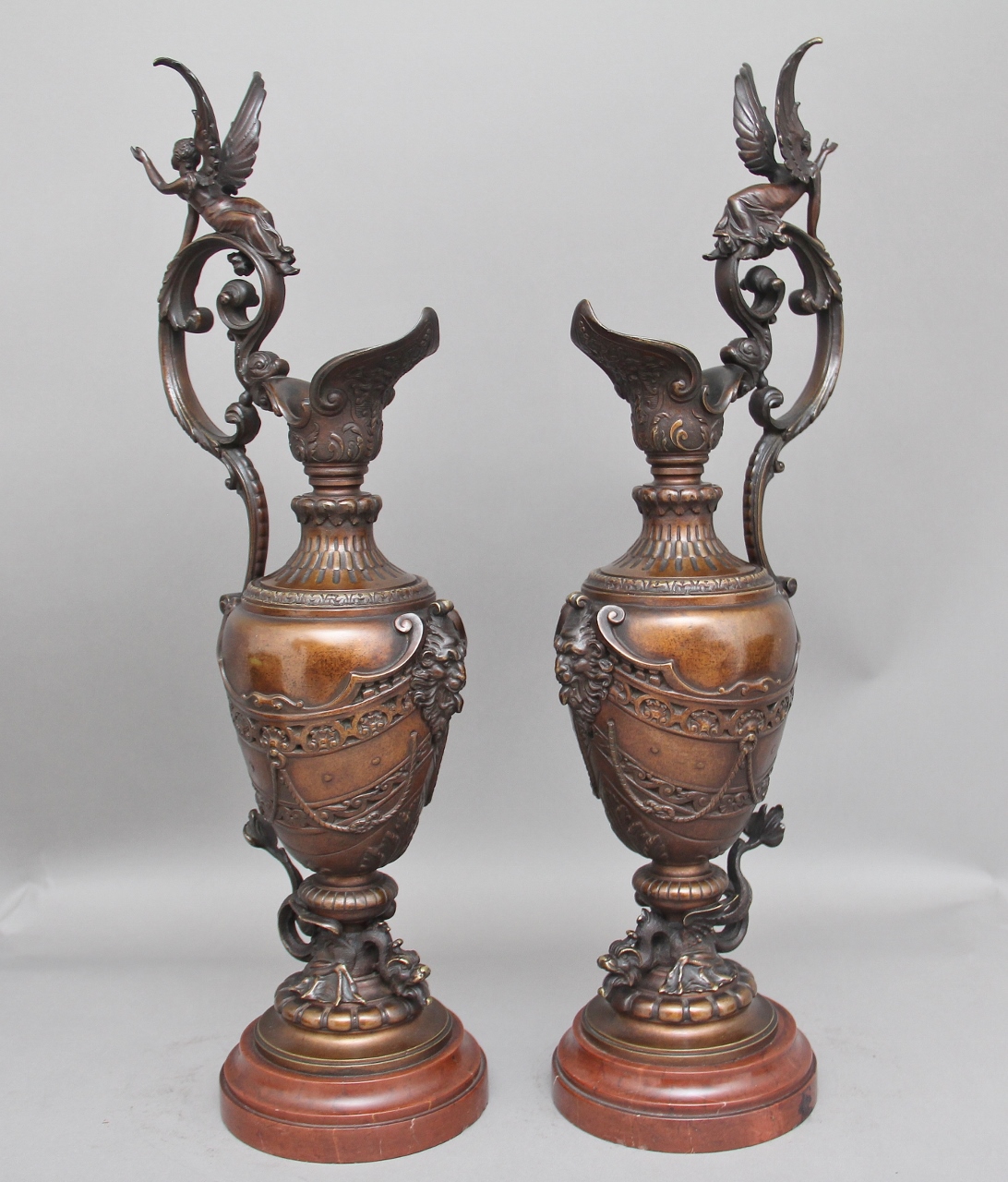 Pair of 19th Century Bronze & Marble Ewers (1 of 14)