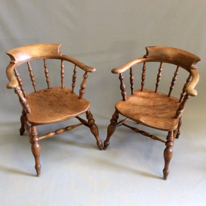 Pair of 19th Century Captains or Smokers Bow Armchairs (1 of 1)