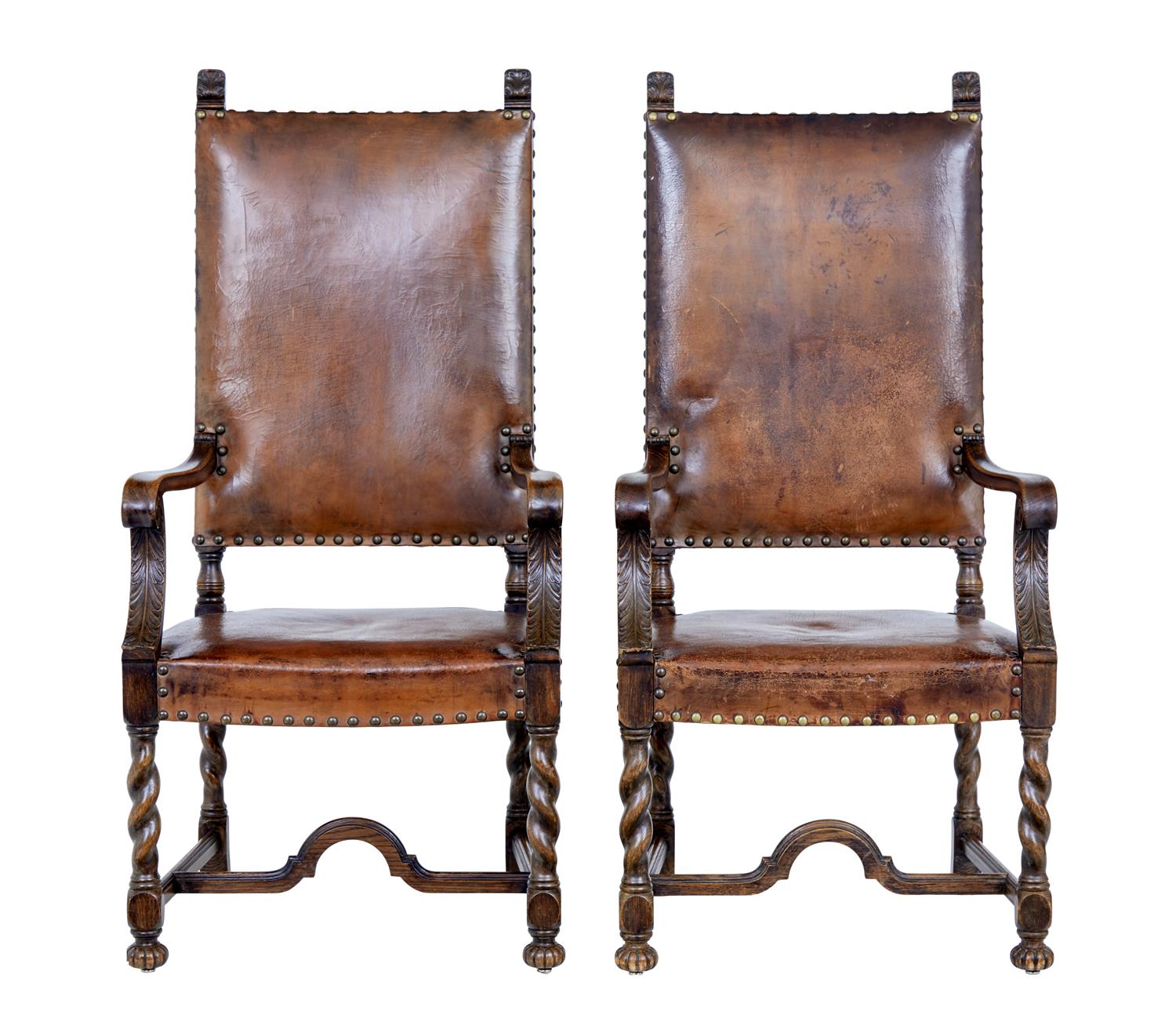 Pair of 19th Century Carved Oak Leather Armchairs (1 of 6)