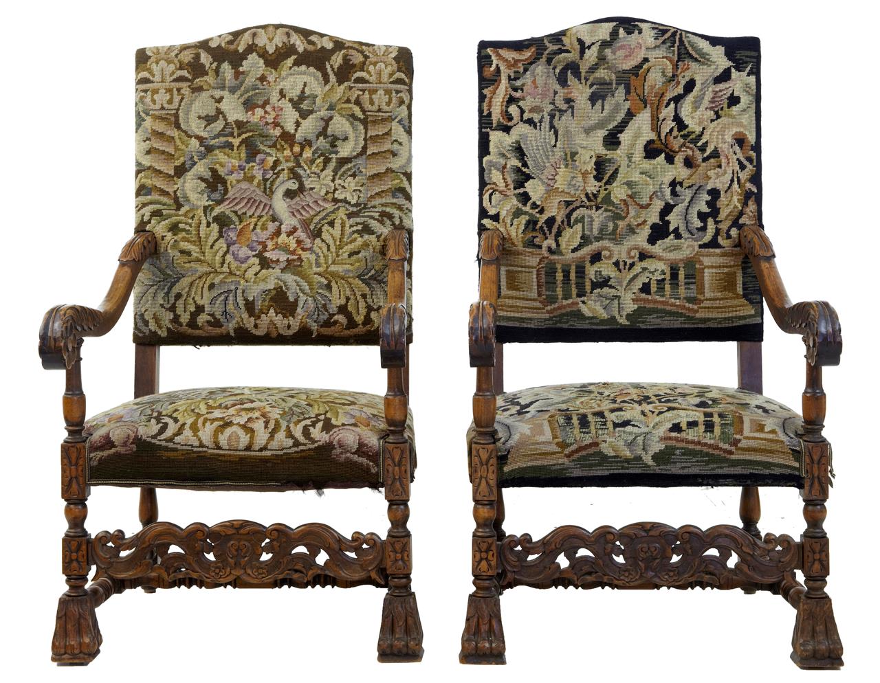 Pair of 19th Century Carved Oak Throne Armchairs c.1880 (1 of 1)