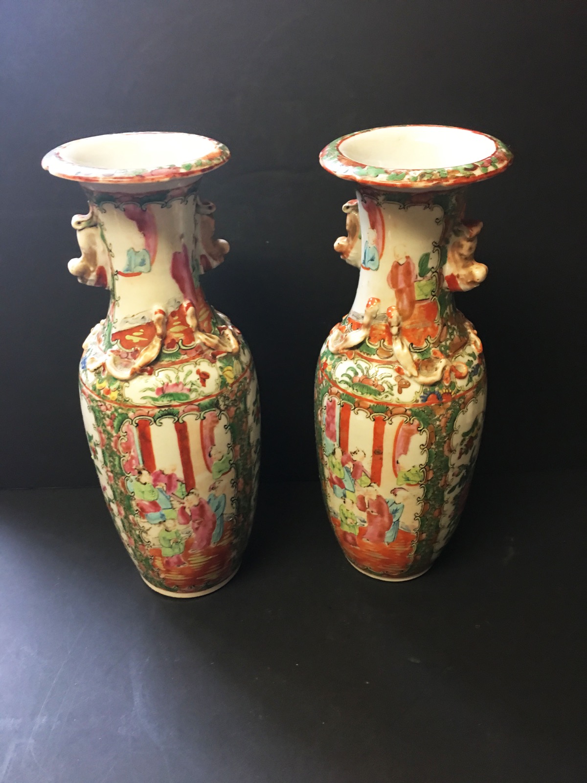 Pair of 19th Century Chinese Canton Enamel Famille Rose Vases