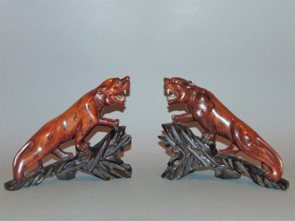 Pair of 19th Century Chinese Carved Hardwood & Bone Tigers (1 of 6)