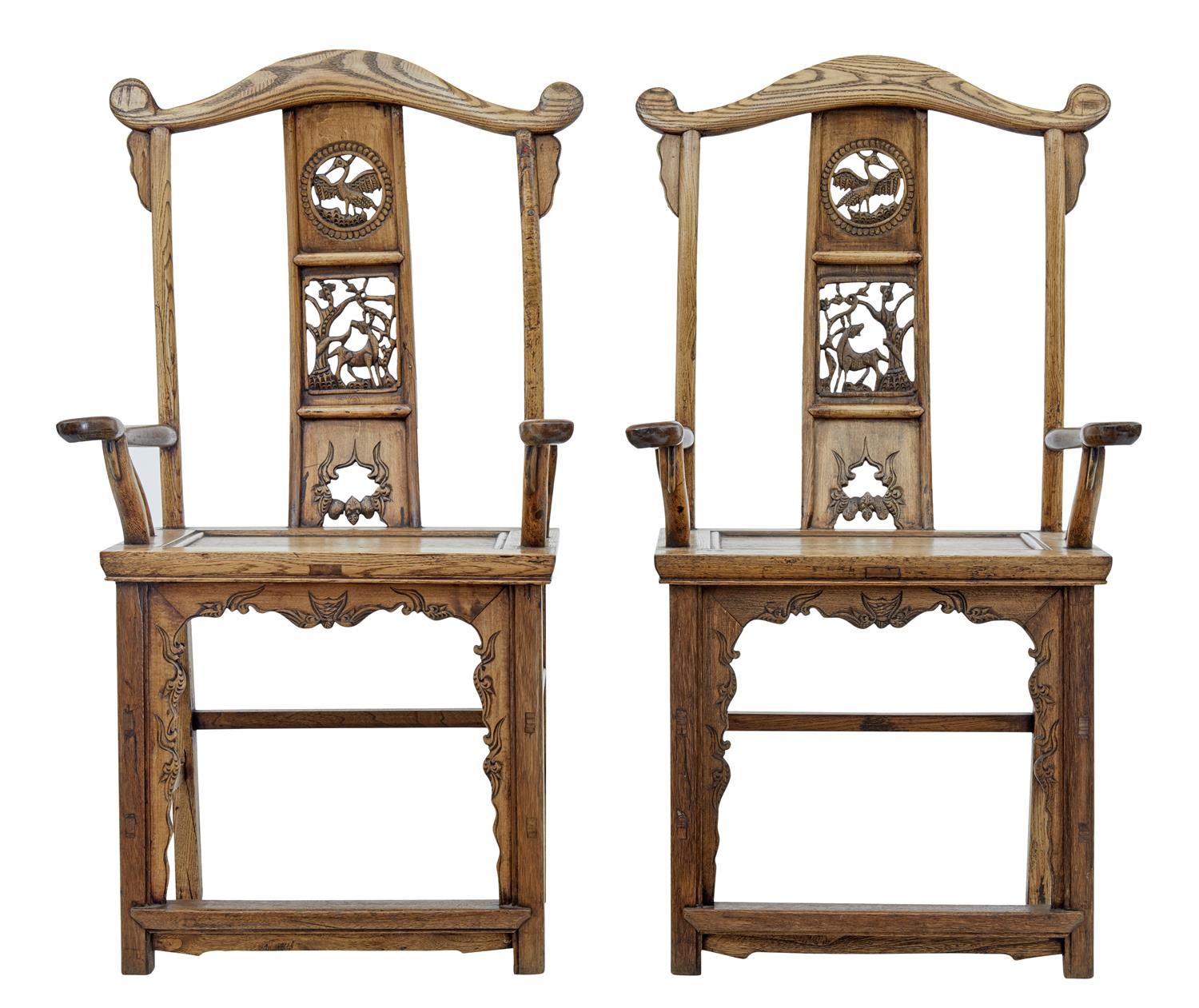 Pair of 19th Century Chinese Elm Yoke Back Armchairs