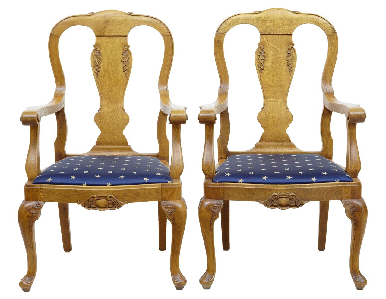 Pair of 19th Century Chippendale Influenced Oak Armchairs
