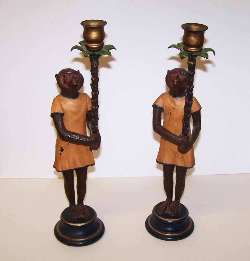 Pair of 19th Century Cold Painted Bronzes, Monkey Candlesticks C.1890