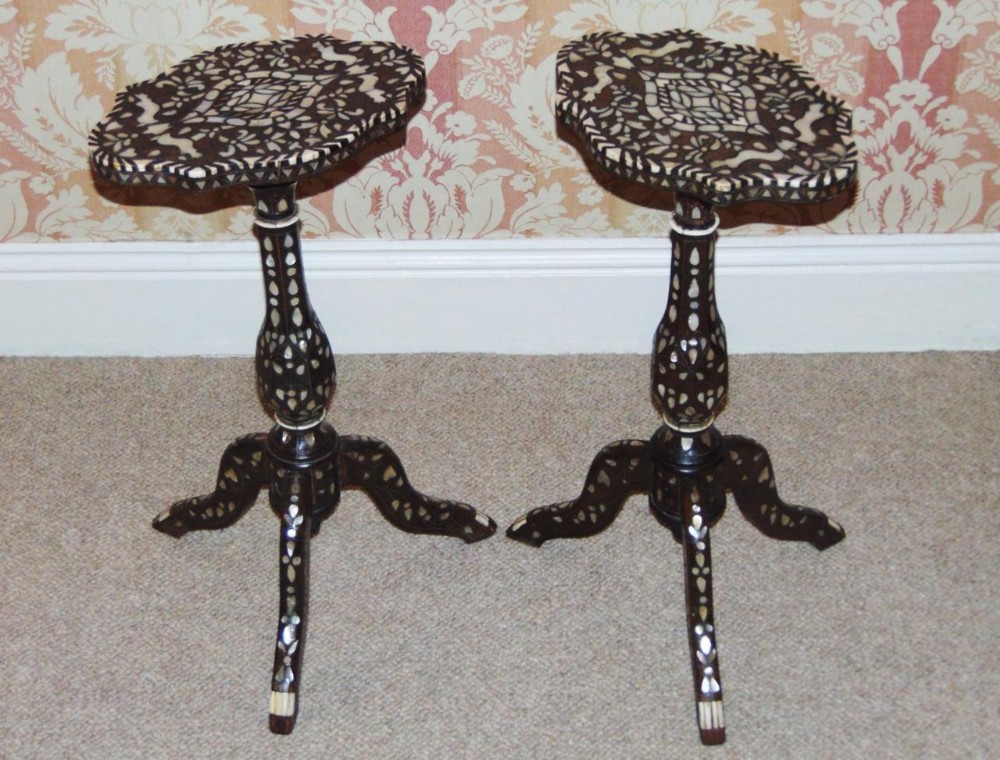Pair of 19th Century Damascus Mother of Pearl Inlaid Tripod Tables