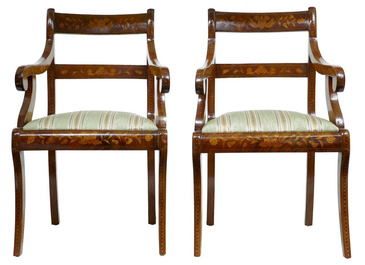 Pair of 19th Century Dutch Walnut Marquetry Armchairs