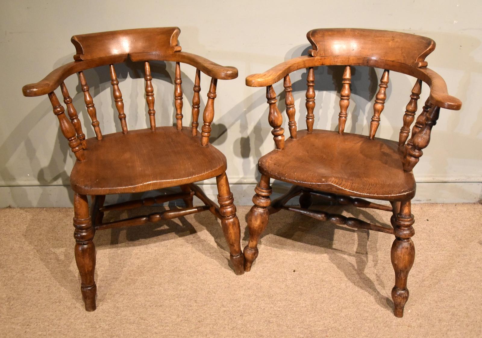 Pair of 19th Century Elm Beech Smokers Bow Chairs (1 of 7)