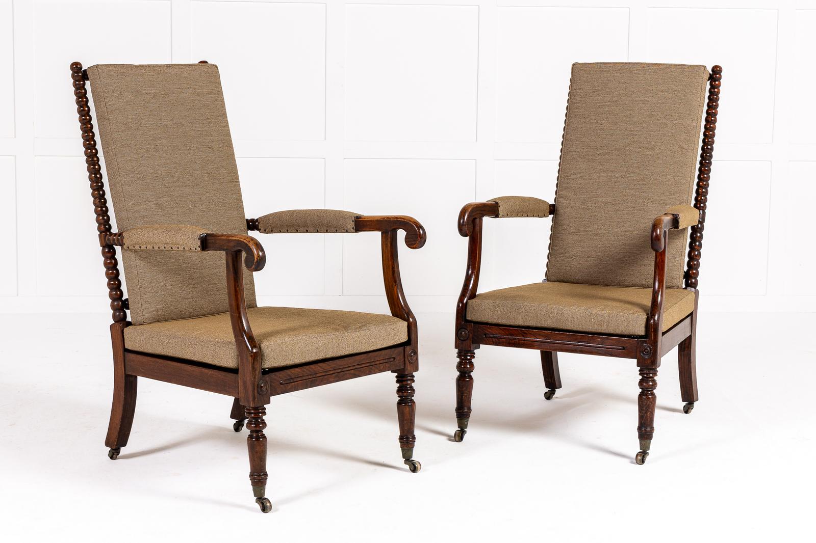 Pair of 19th Century English Regency Period Bobbin Turned Armchairs