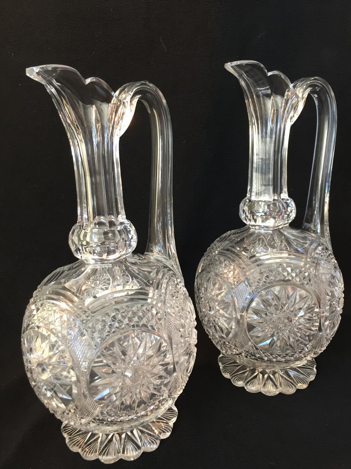 Pair of 19th Century Ewer Shaped Cut Crystal Decanters