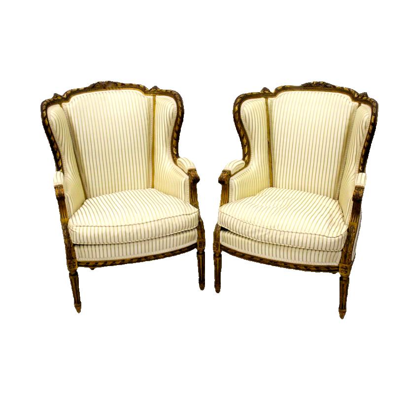 Pair of 19th Century French Carved Giltwood Wing Armchairs