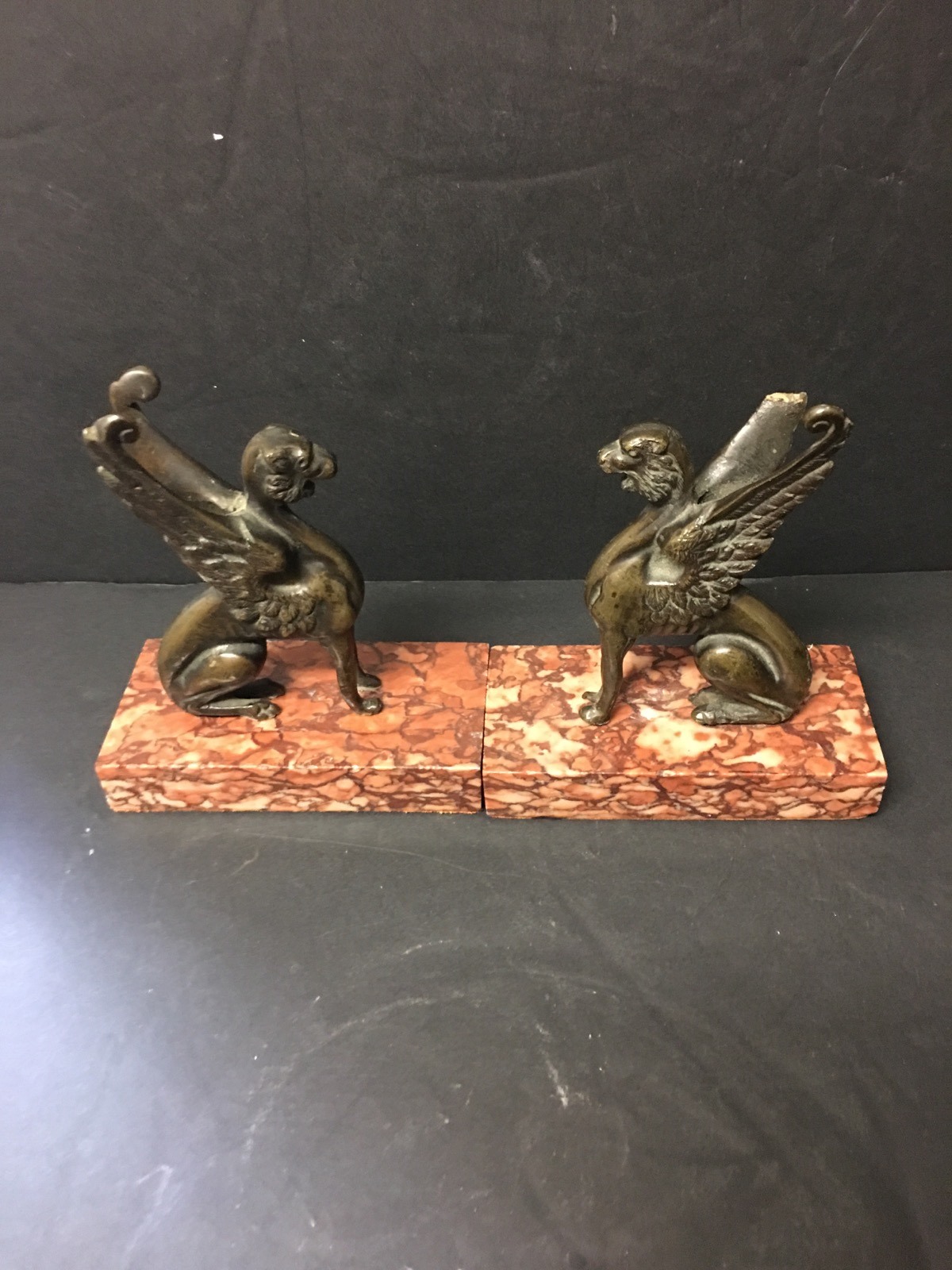 Pair of 19th Century French Empire Period Egyptian Revival Bronze Winged Griffins