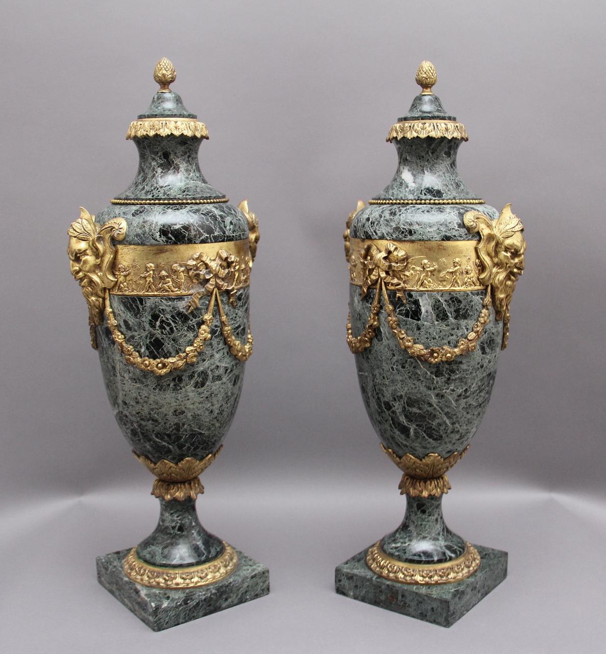 Pair of 19th Century French Marble & Cassoulet Urns
