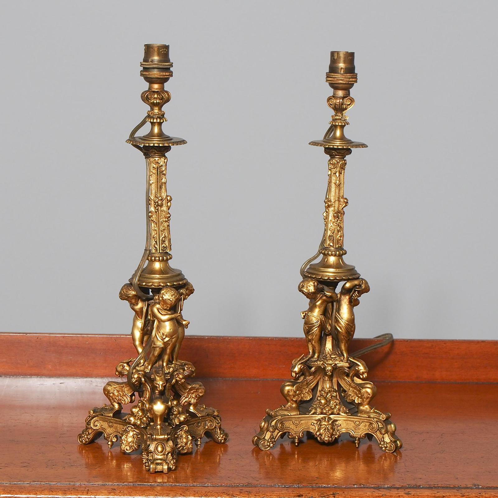 Pair of 19th Century French Ormolu Lamps (1 of 8)