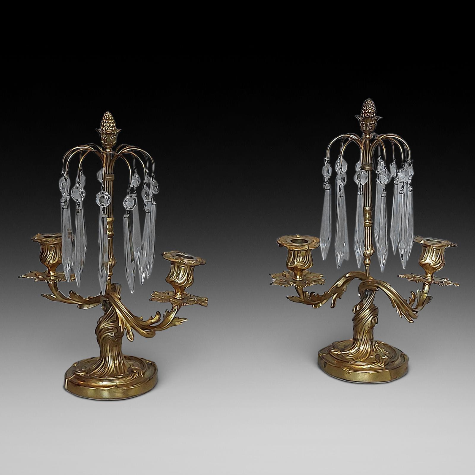 Pair of 19th Century French Twin Branch Ormolu Lustres (1 of 7)