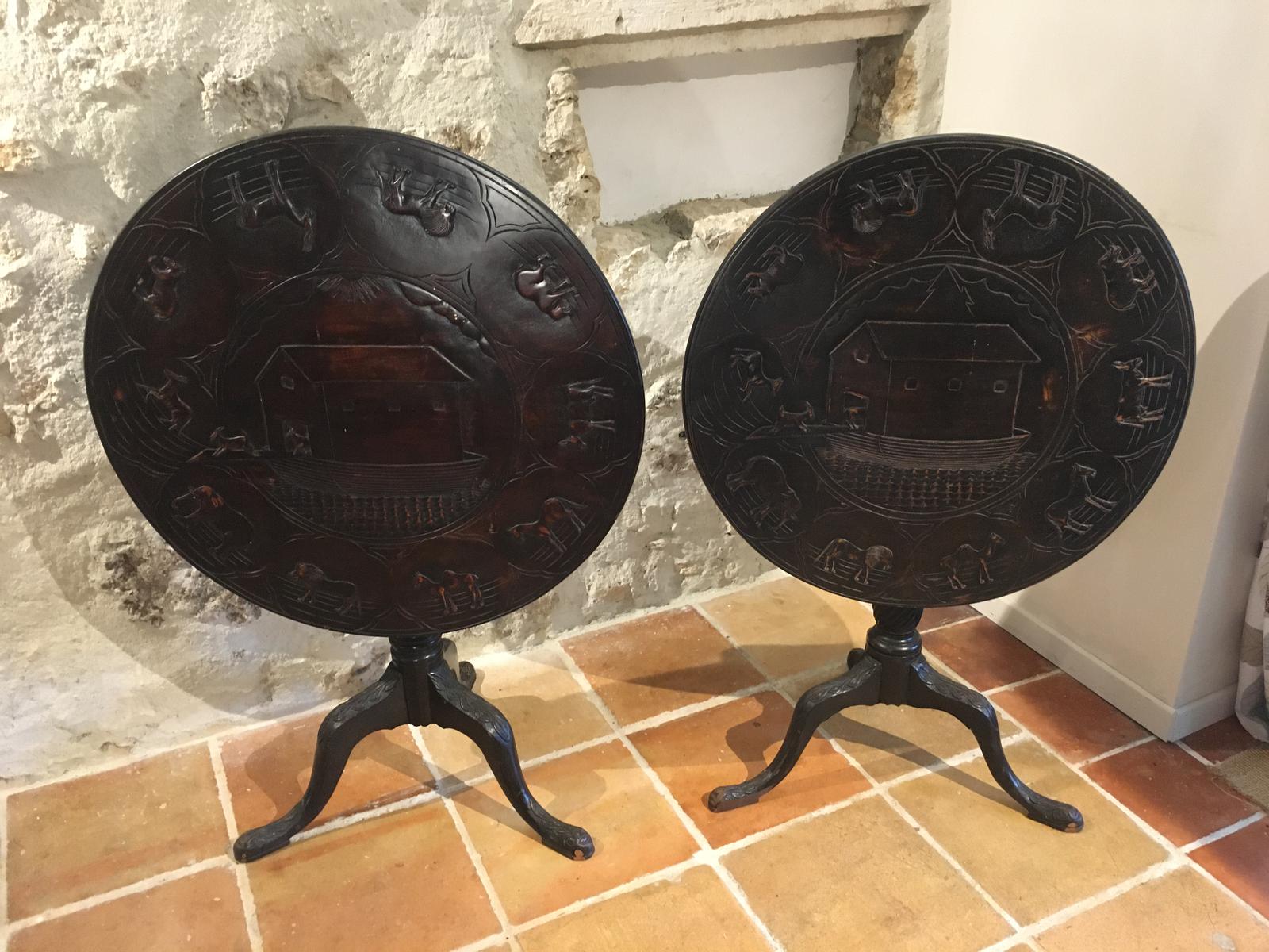 Pair of 19th Century French Walnut Tilt Top Tripod Noah’s Ark Tables