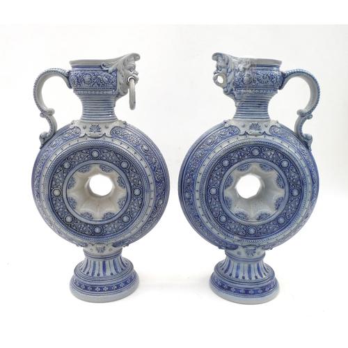 Pair of 19th Century German Weserwald Salt Glazed Moon Flask Ewers