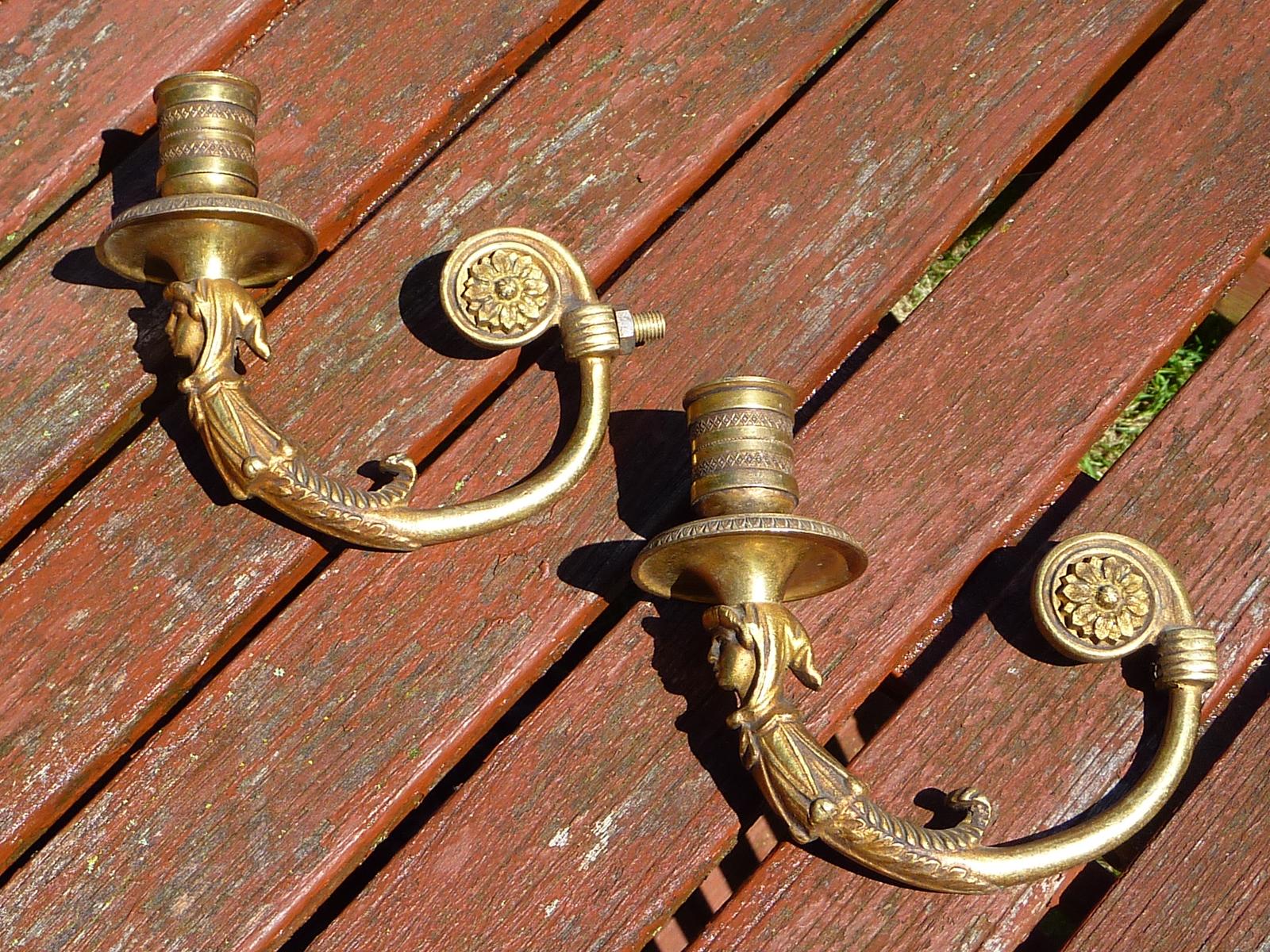 Pair of 19th Century Gilt Bronze Wall-Mounting Candle Arms