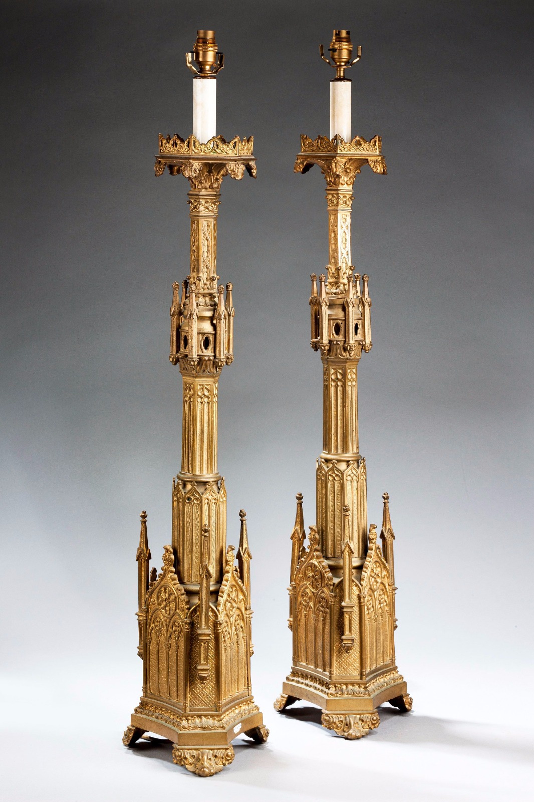 Pair of 19th Century Gothic Gilt Bronze Lamps