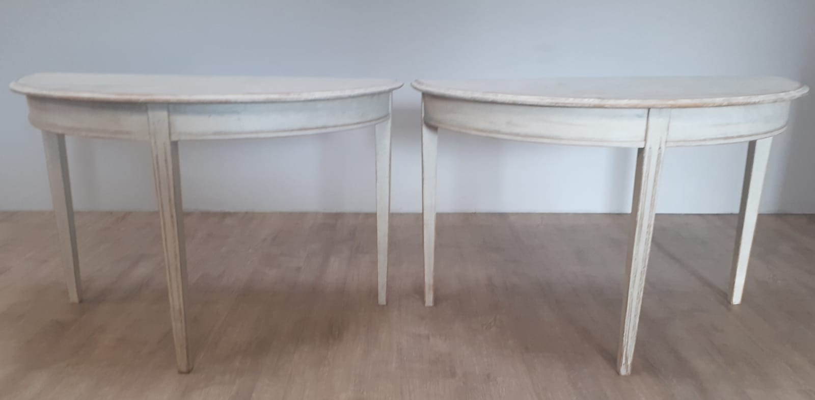Pair of 19th Century Gustavian Style Painted Pine Demi-Lune Console Tables