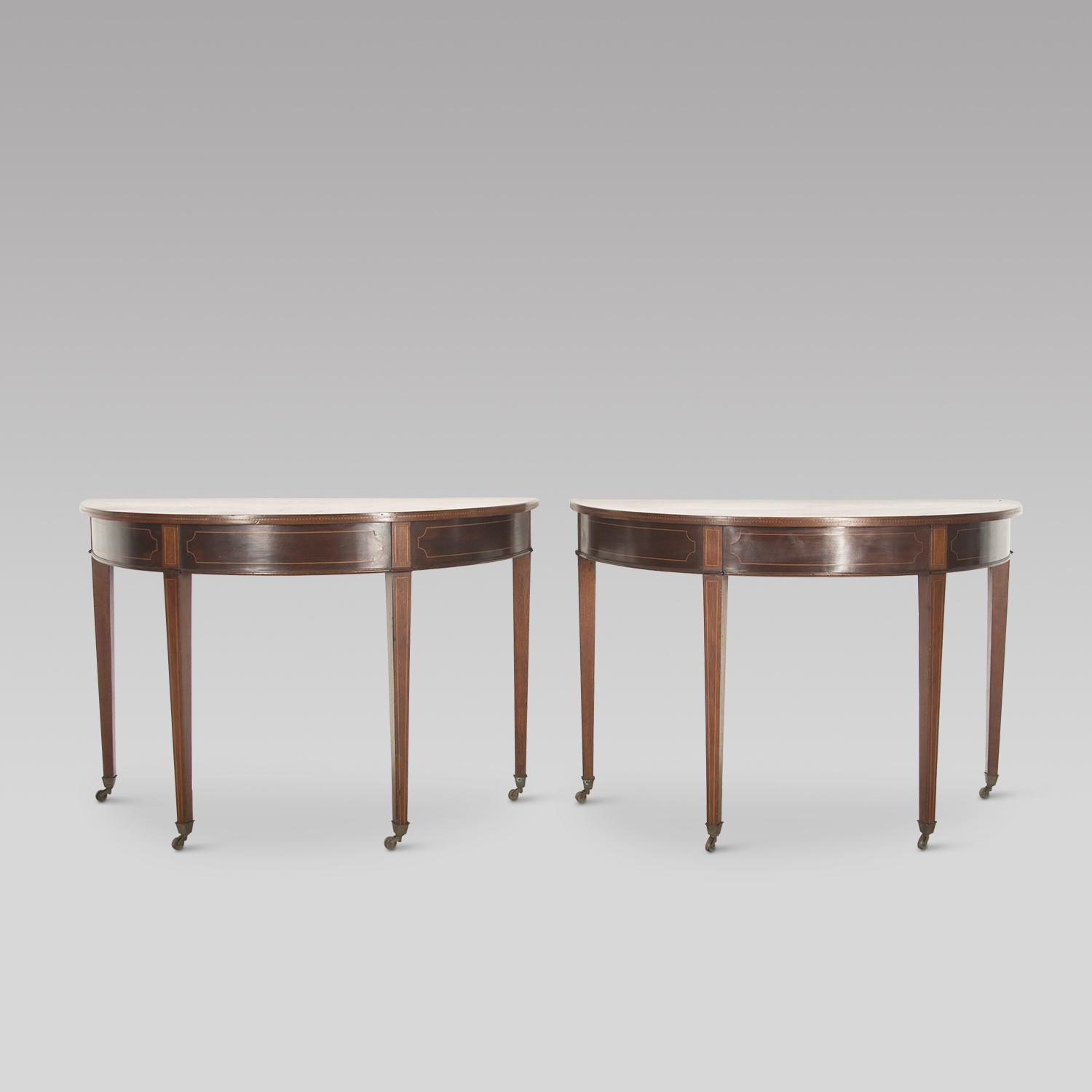 Pair of 19th Century Mahogany Demi Lune Tables (1 of 4)