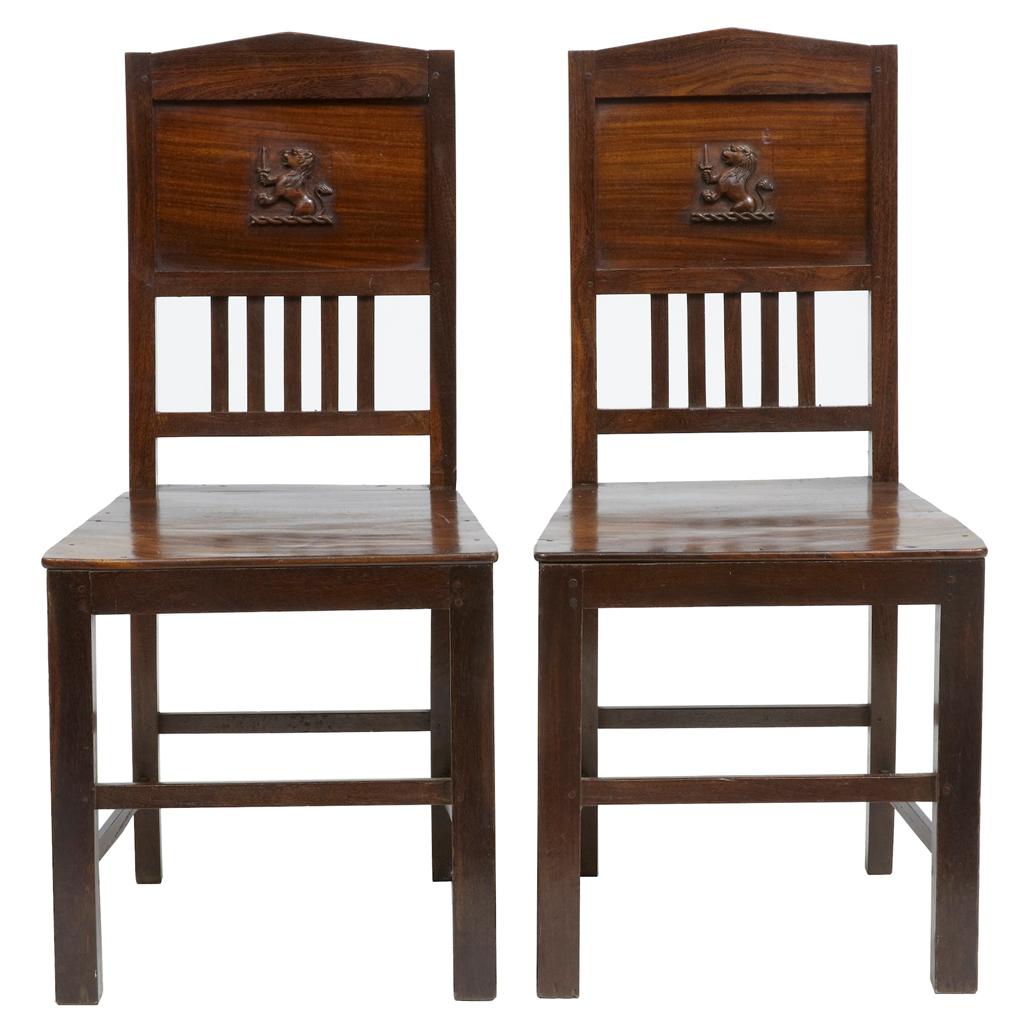 Pair of 19th Century Mahogany English Colonial Hall Chairs