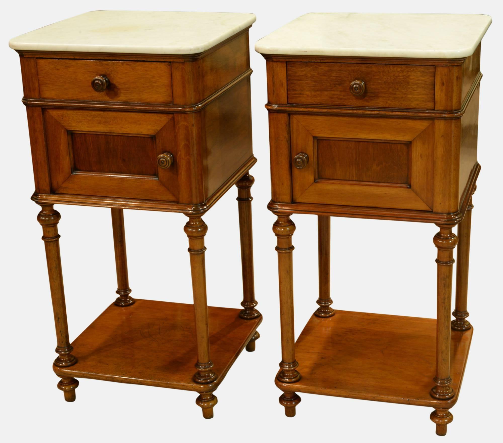 Pair of 19th Century Marble Topped Bedside Stands