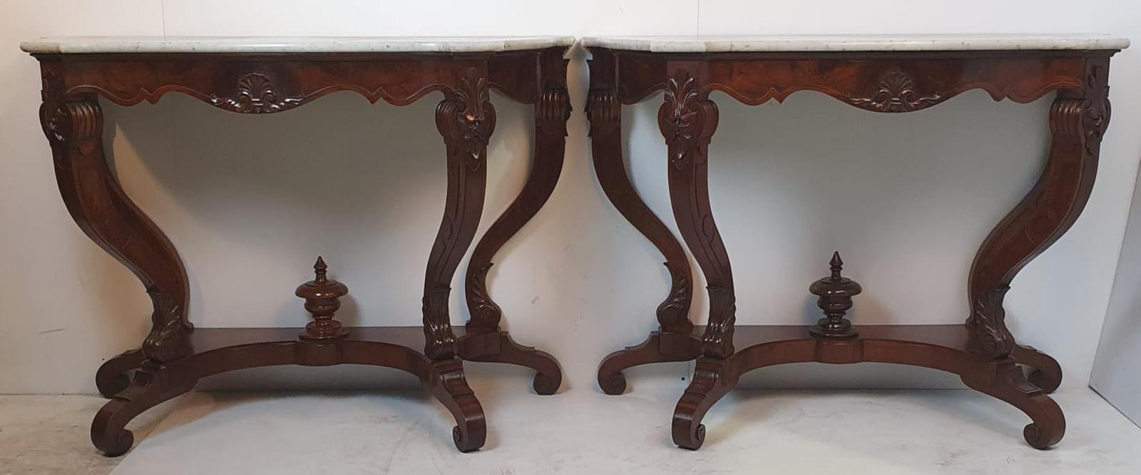 Pair of 19th Century Marble Topped Walnut Console Tables