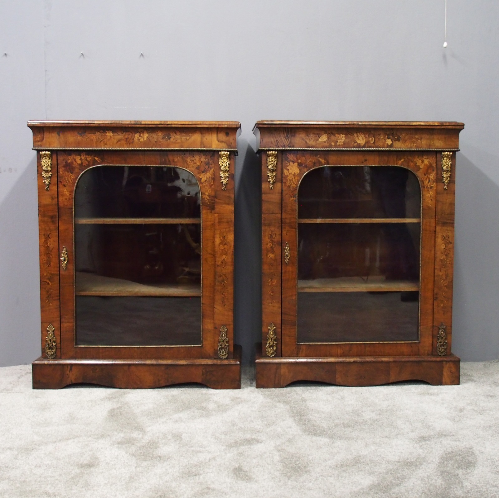 Pair of 19th Century Marquetry Inlaid Walnut Pier Cabinets (1 of 10)