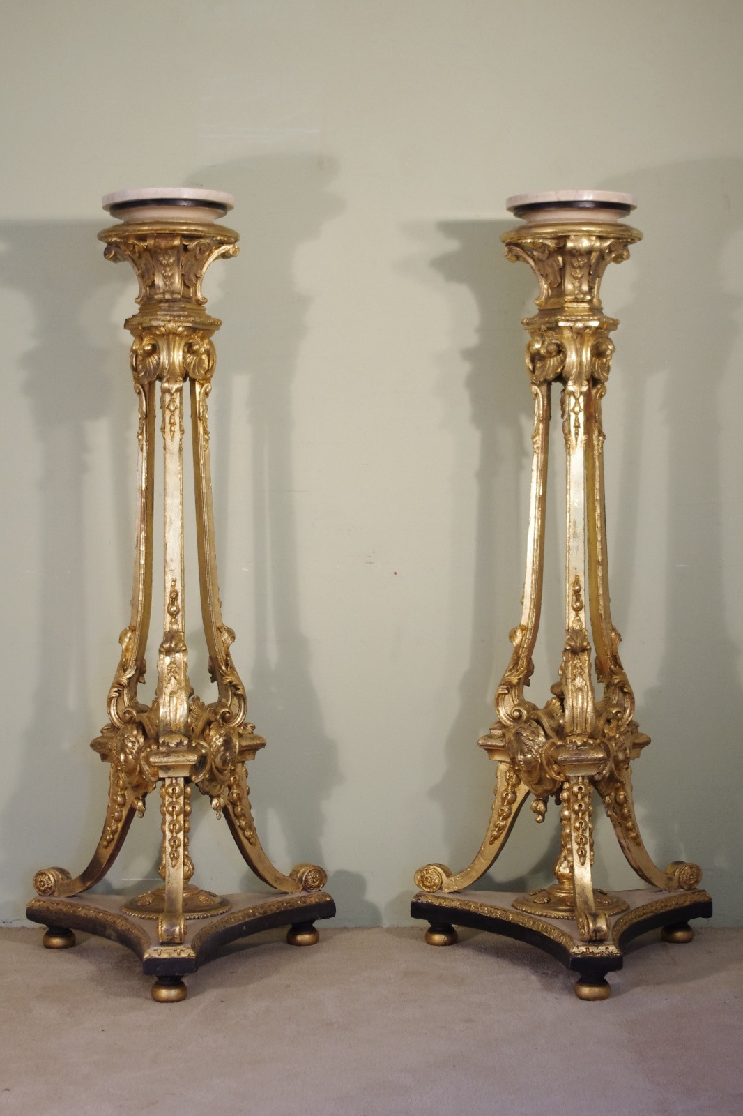 Pair of 19th Century Painted & Parcel-Gilt Torcheres
