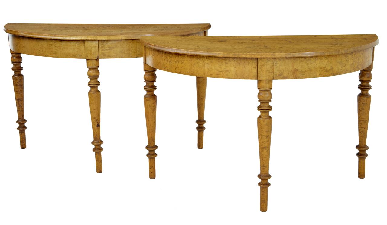 Pair of 19th Century Swedish Birch Demi Lune Tables c.1870