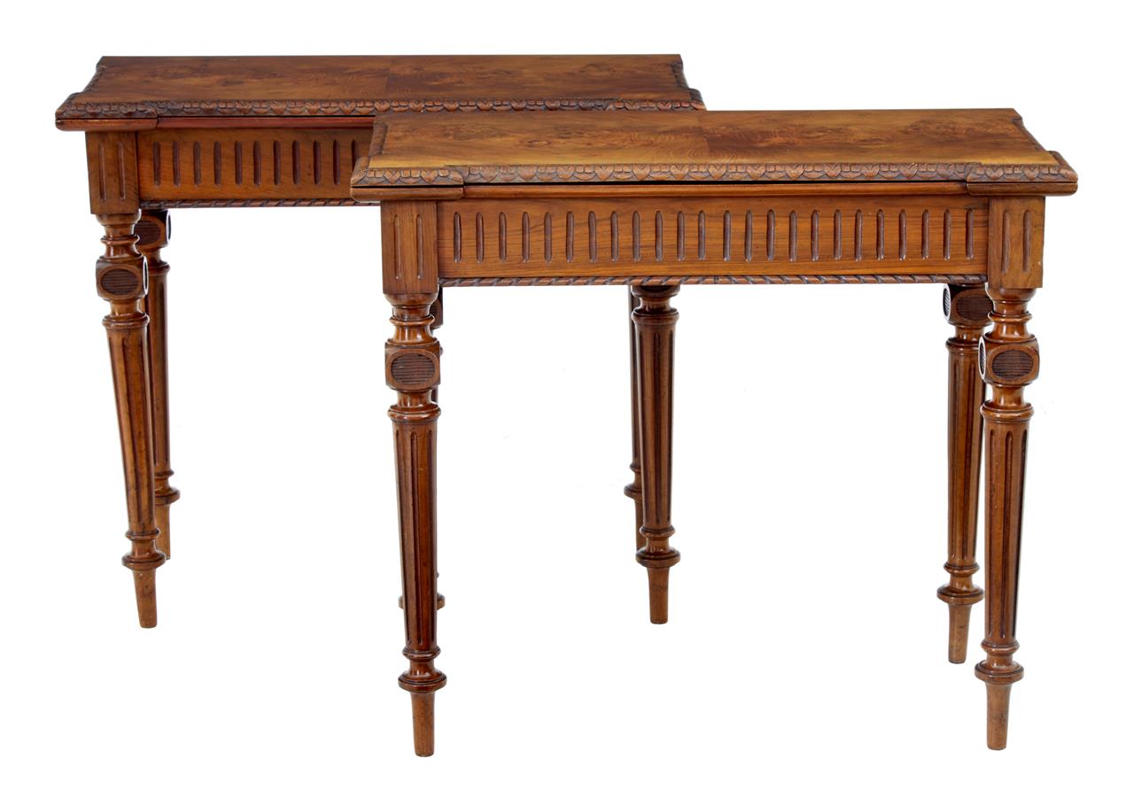 Pair of 19th Century Victorian Burr Walnut Extending Tea Tables