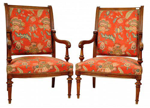 Pair of 19th Century Walnut Framed Armchairs