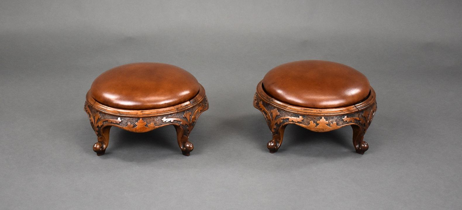 Pair of 19th Century Walnut Leather Stools