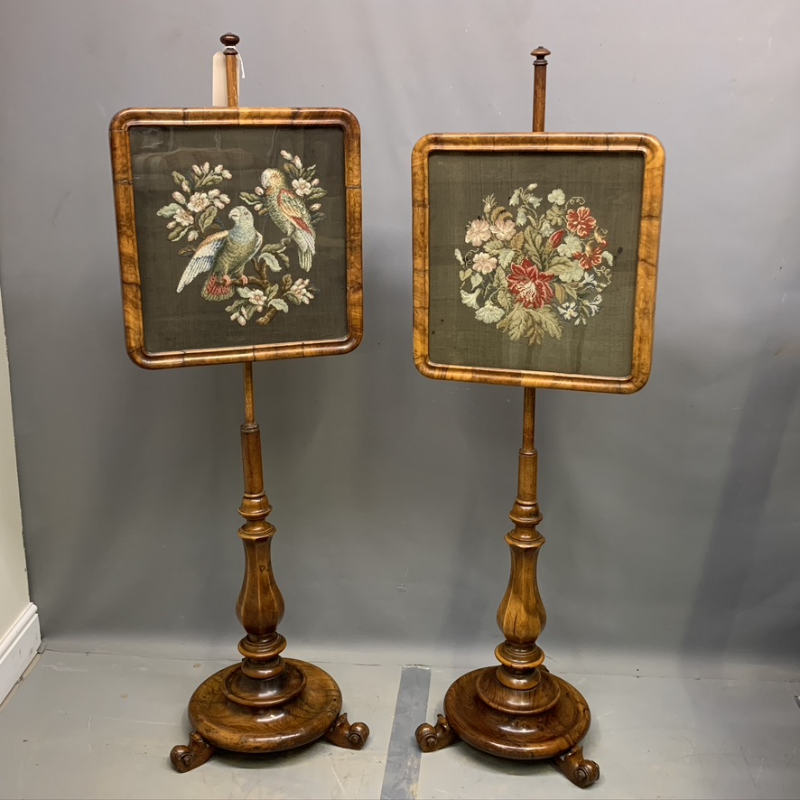 Pair of 19th Century Walnut Pole Screens with Wool Work Panels (1 of 1)