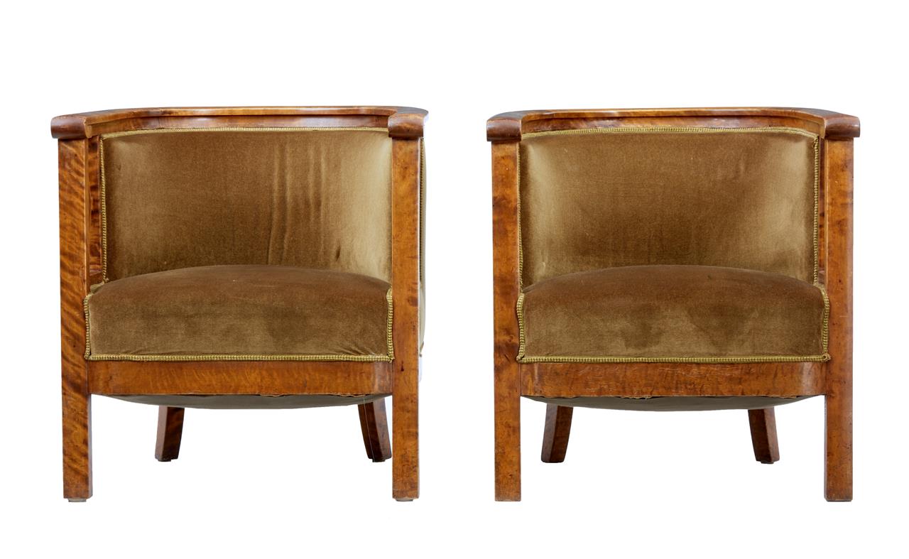 Pair of 20th Century Art Deco Birch Club Armchairs